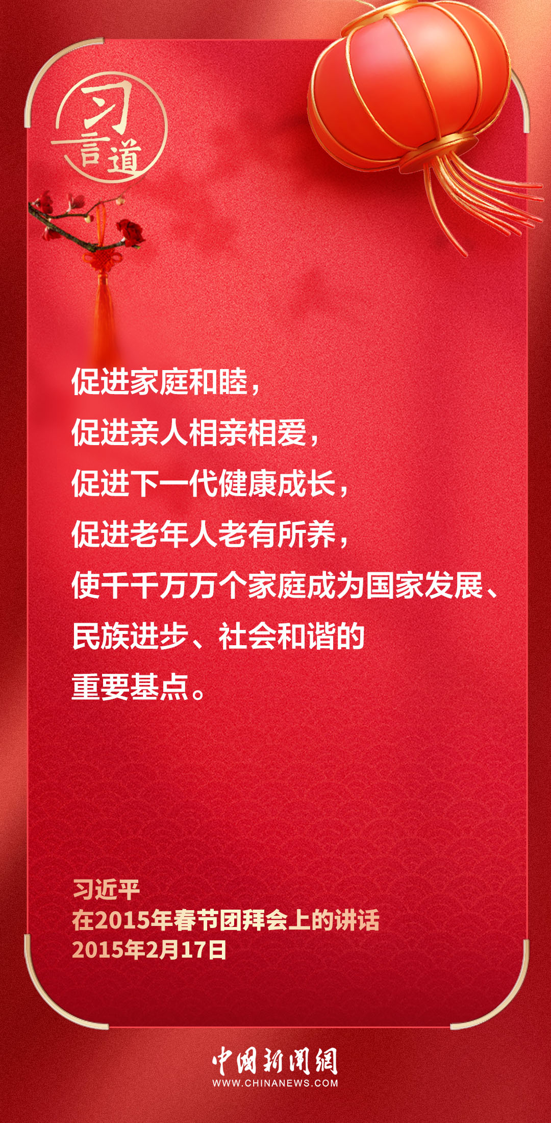 元宵节是家庭团圆的美好节日。中华民族自古以来就重视家庭、重视亲情。习近平总书记高度重视家庭文明建设,强调家庭和睦则社会安定,家庭幸福则社会祥和,家庭文明则社会文明。